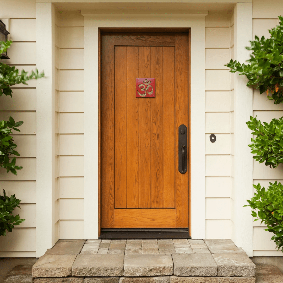 This ancient Sanskrit symbol, sacred to millions of people around the world, is hand carved in recycled wood and finished in antiqued deep red and gold.