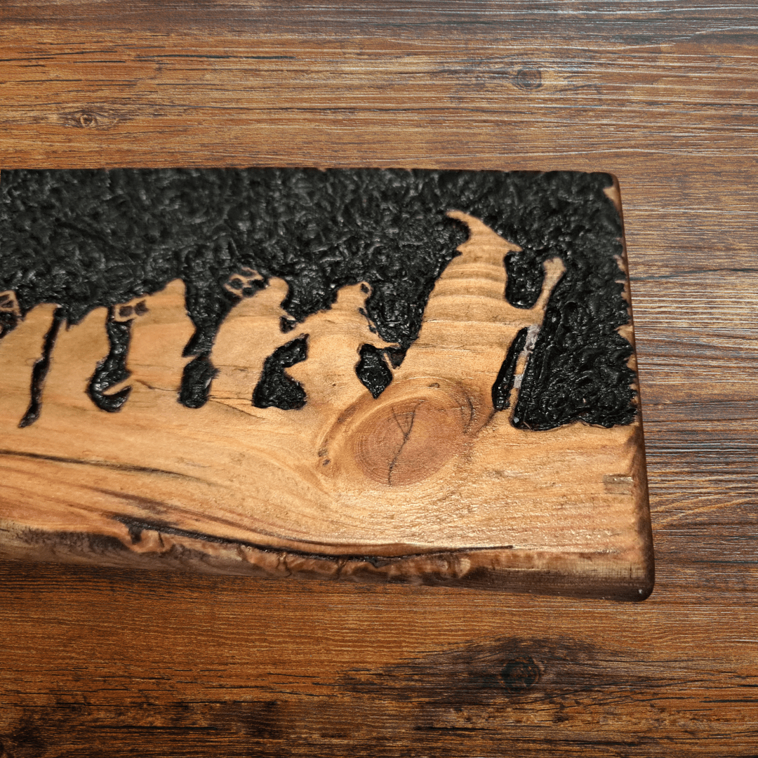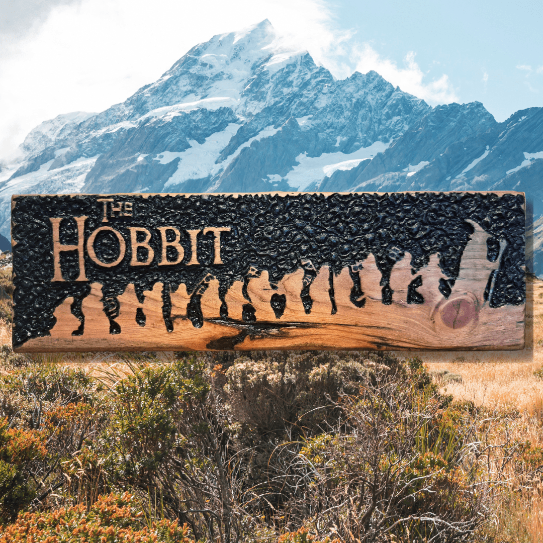 Journey to Middle-earth with this handcrafted wooden carving. Carved from reclaimed wood, it depicts the iconic scene of Gandalf leading the company of dwarves and Bilbo Baggins on their quest to reclaim the Erebor, beneath the Lonely Mountain, from the fearsome dragon Smaug. The natural knot in the wood is strikingly reminiscent of Smaug’s piercing eye, adding an extra touch to the piece.